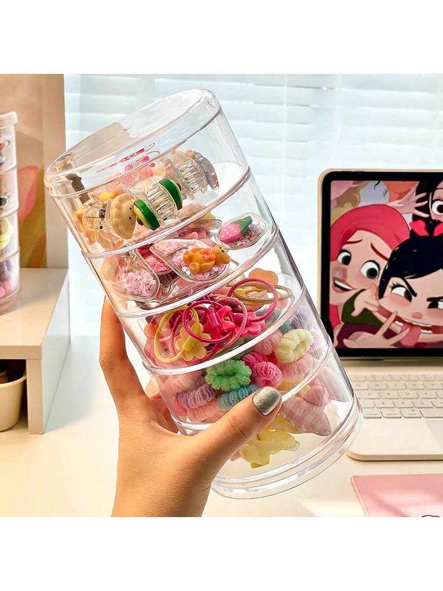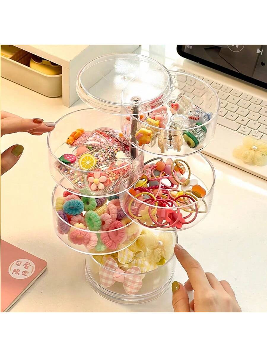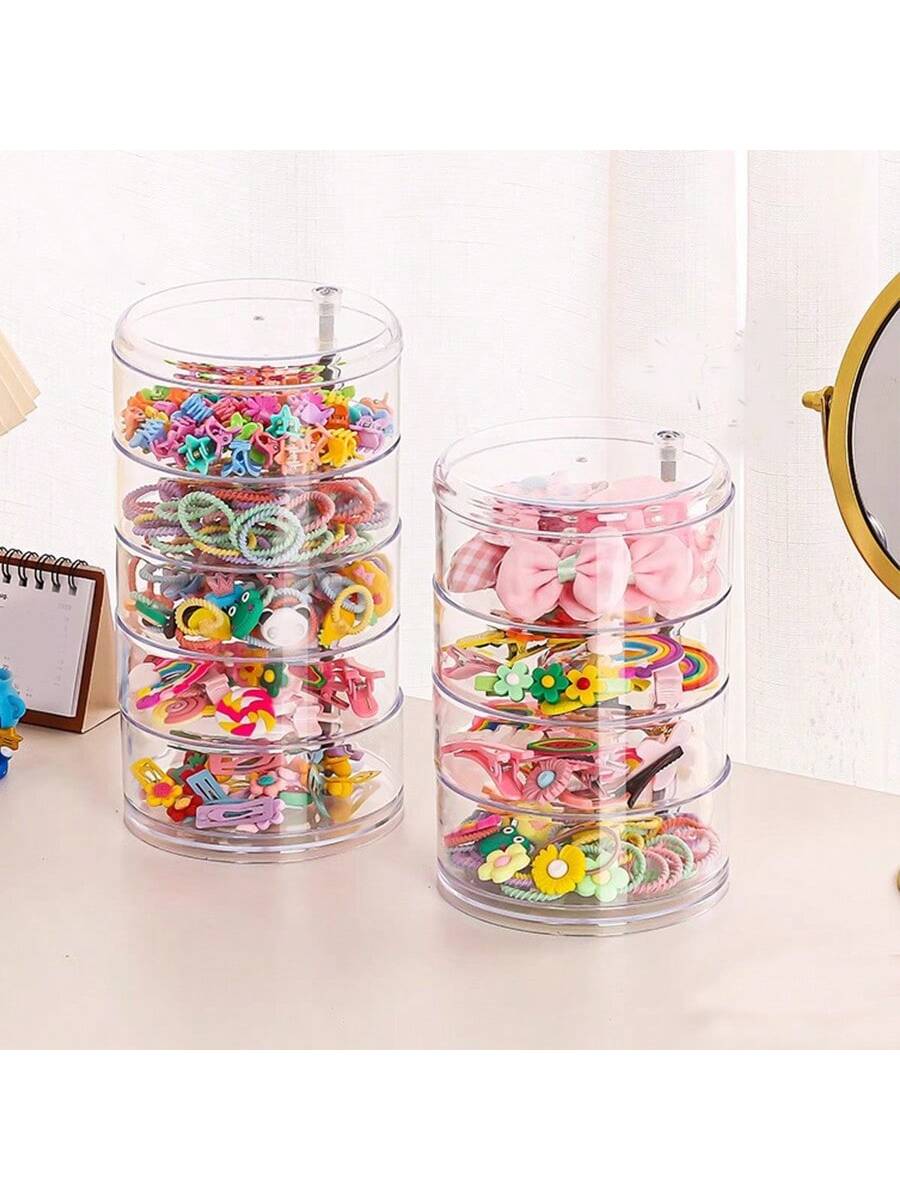 صندوق تخزين دوار مقاوم للغبار لتنظيم اكسسوارات شعر الأطفال منظم متعدد الحجرات للزينة، الأقراط، المشا