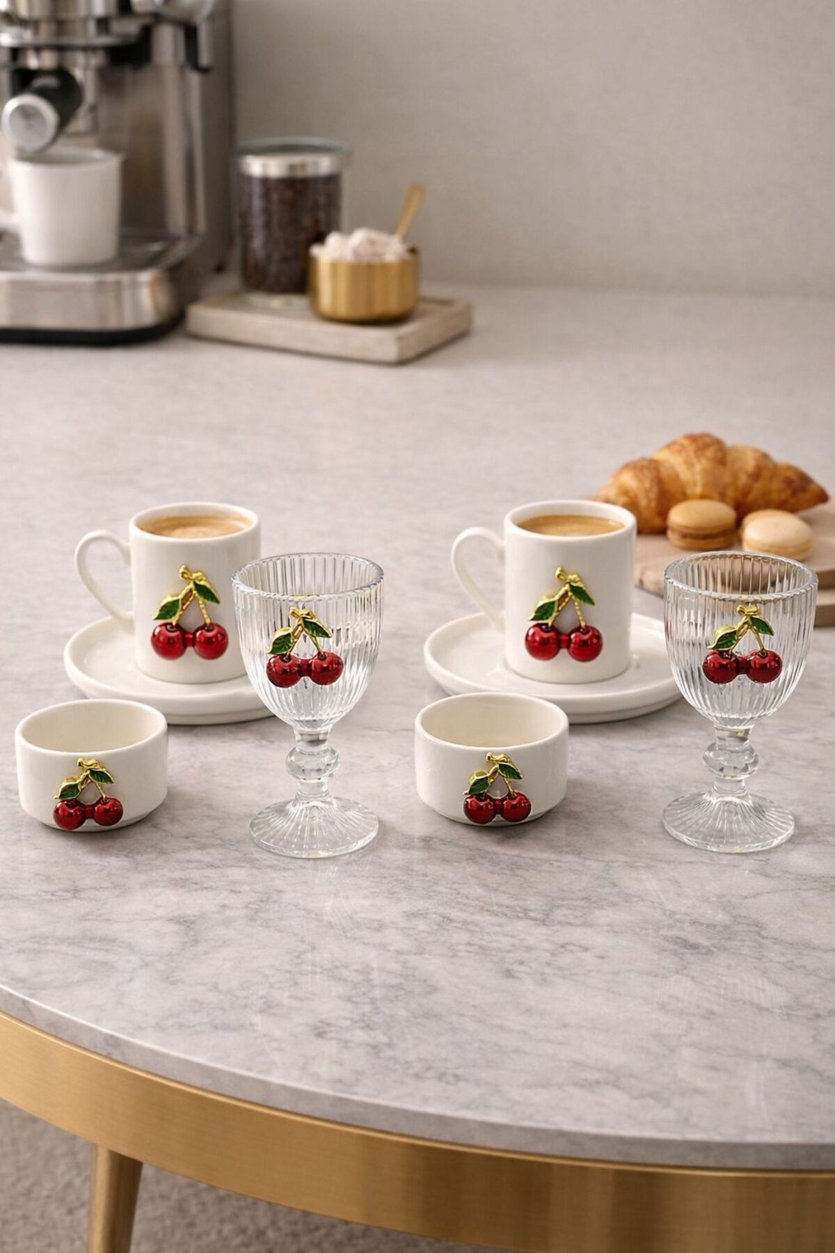 طقم أكواب الكرز الخزفي لشخصين وقطعتين من حامل الكرز الخزفي وقطعتين من الأكواب الزجاجية