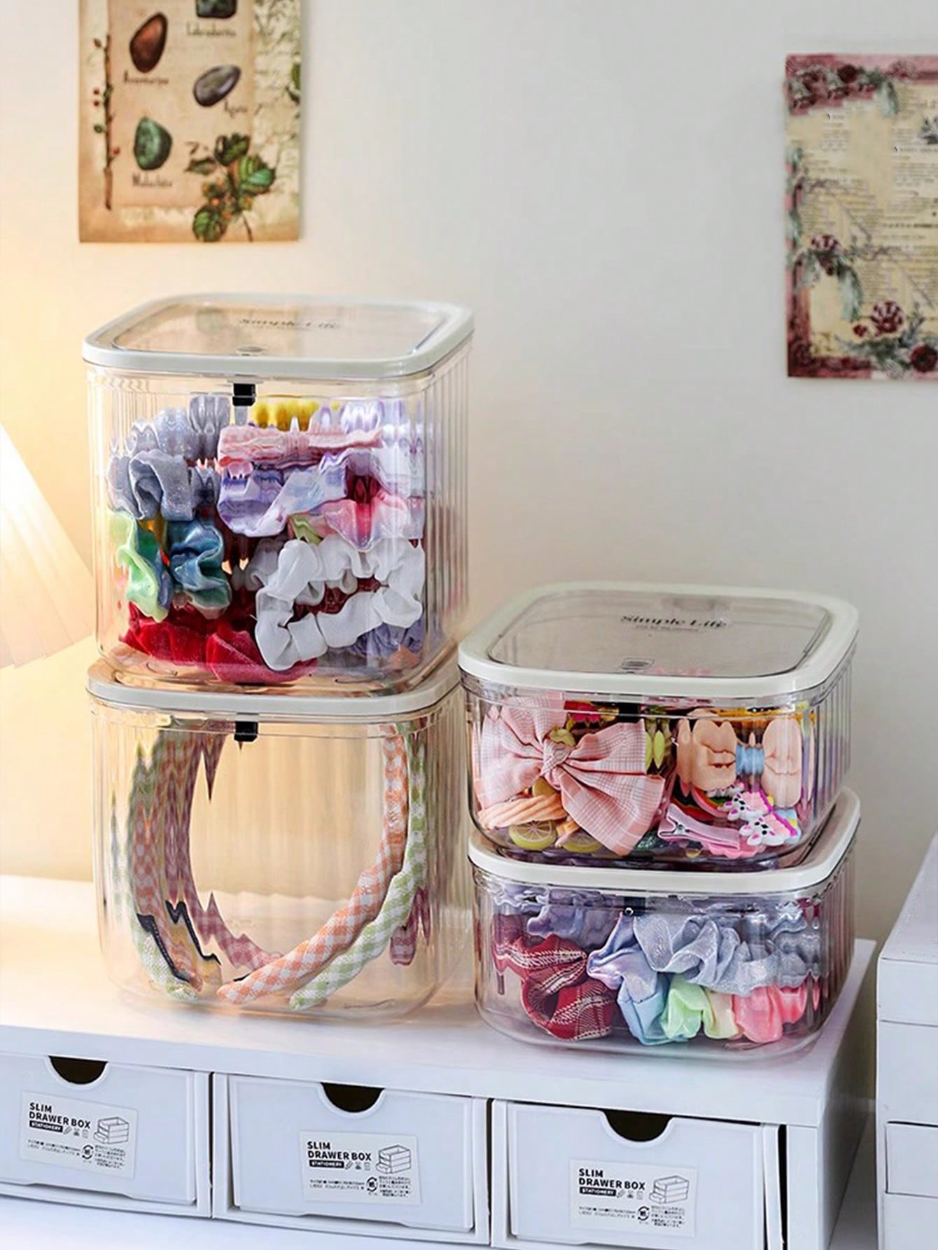 علبة تخزين اكسسوارات الشعر قطعة واحدة، صندوق مجوهرات كبير الحجم وشفاف مغطى، مناسب لرباطات الشعر، الش