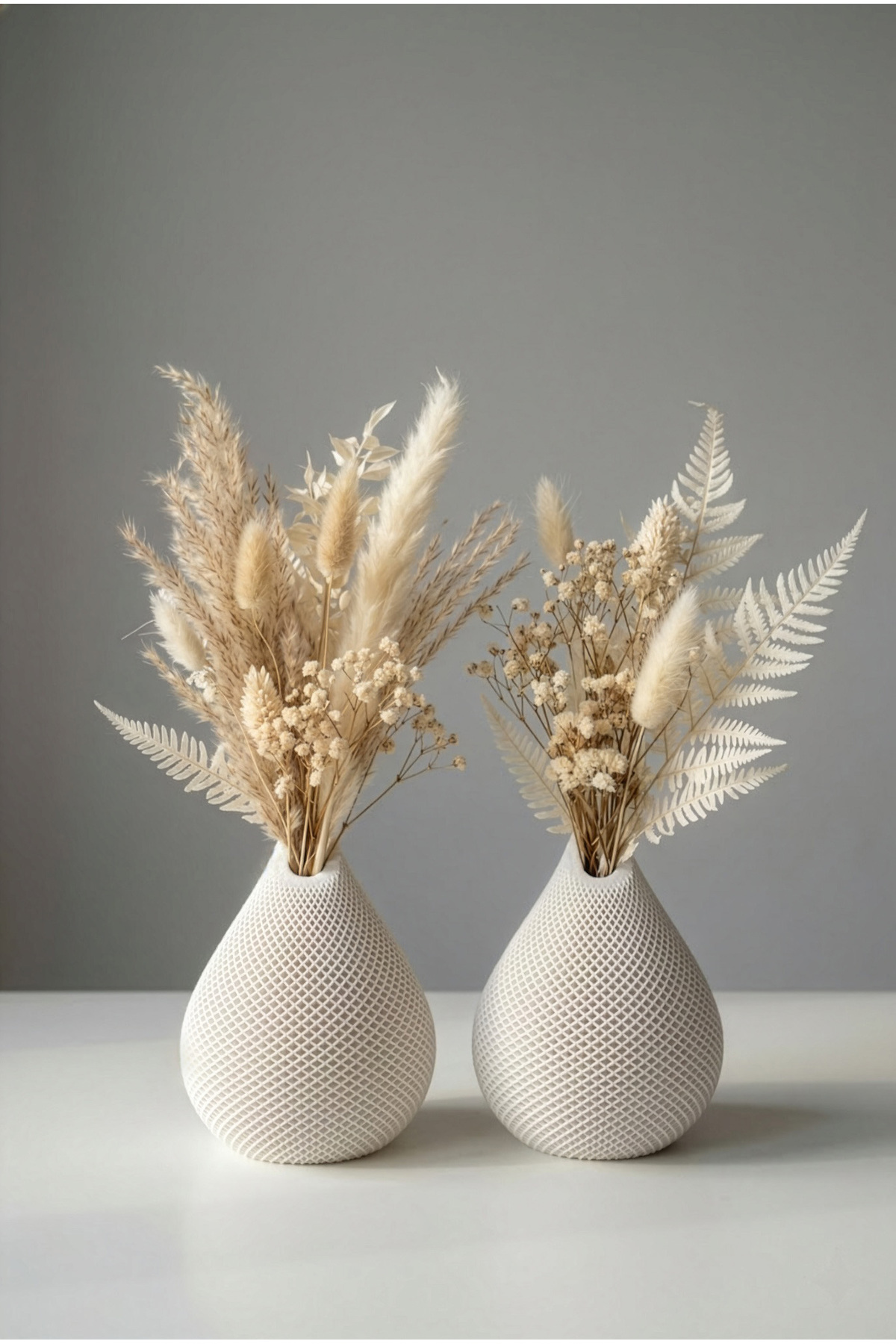 مجموعة من 2 مزهرية زخرفية بيضاء ذات ملمس شبكي على شكل قطرة