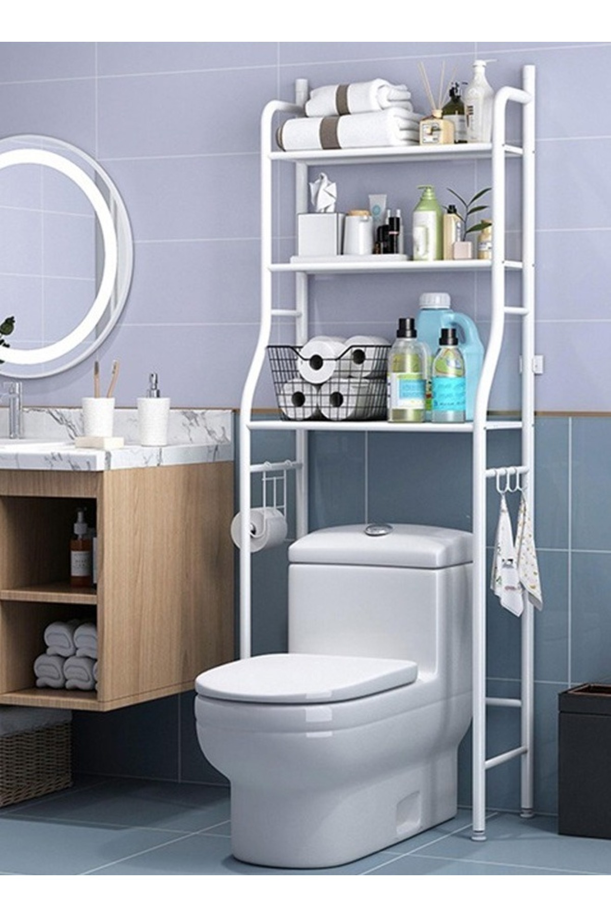 منظم رف تخزين المناشف بثلاثة رفوف فوق المرحاض والحمام باللون الأبيض 50 × 25 × 160 سم