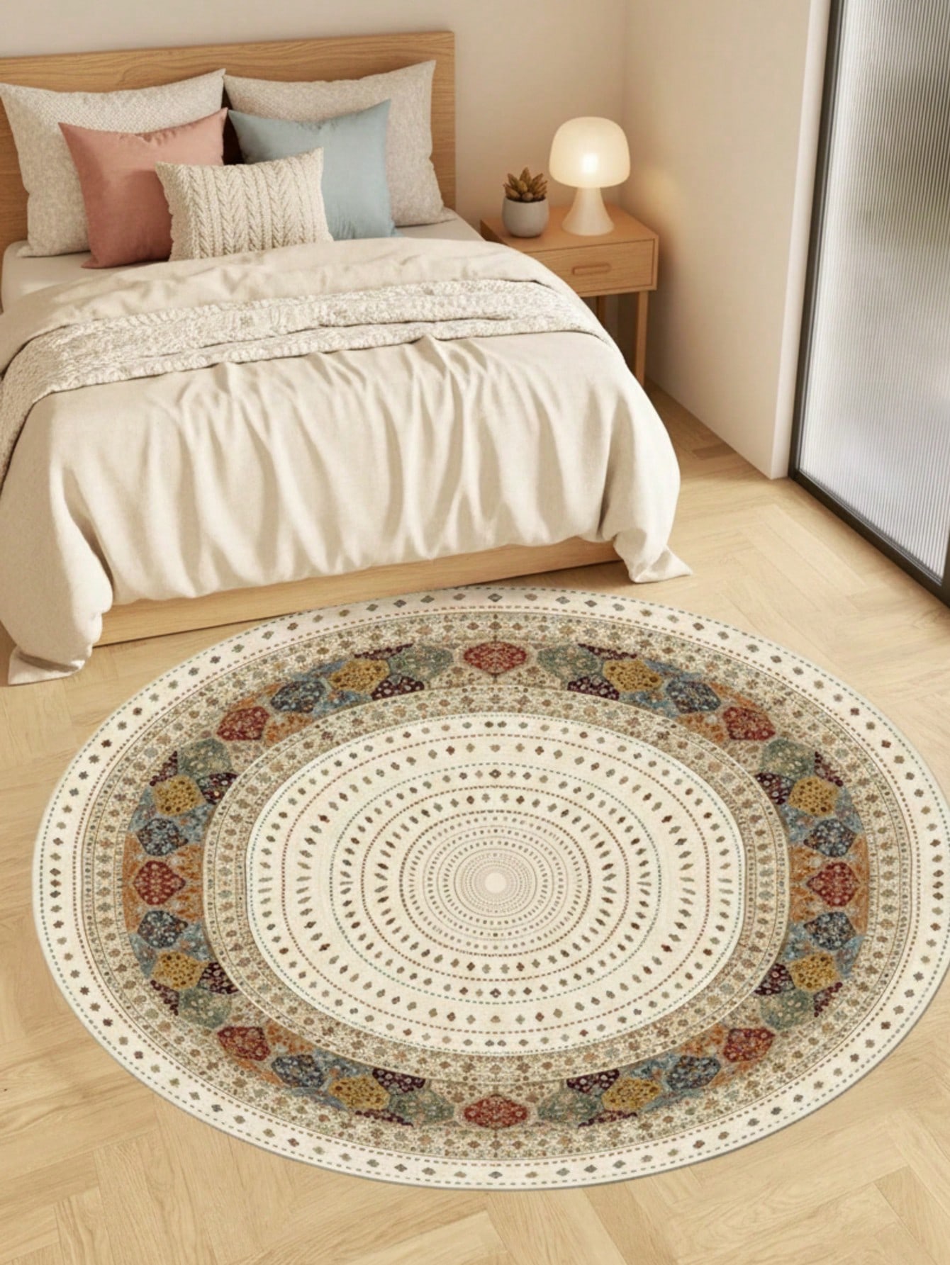 1 قطعة سجادة دائرية ملونة مطبوعة بطراز بسيط للشتاء - سجادة زخرفية جميلة بطراز عتيق، مناسبة للديكور ا